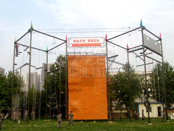 滄州華北特訓器械有限公司,坐落于河北省滄州青縣,靠近京滬高速公路,交通非常便利。公司現占地總面積10000多平方米,廠房8500平方米,是國內較早專業從事拓展訓練器械的研發、設計、生產、安裝、銷售為一體的現代化企業。
